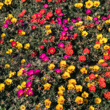 Plante annuelle tapissante aux fleurs simples dans un mélange de tons, jaune, orange, rose, rouge. Elle supporte un climat chaud et sec et atteint une hauteur de 15 cm.